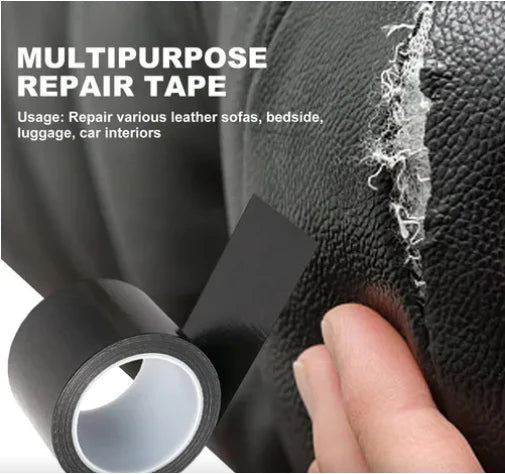 Cinta reparadora ultraresistente: Elegí entre color negro o marrón. Perfecta para tapar roturas y desgastes en sillones, asientos, bolsos o ropa de cuero.
